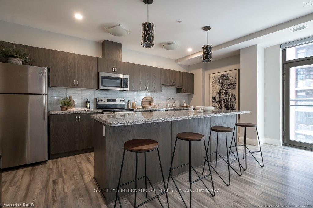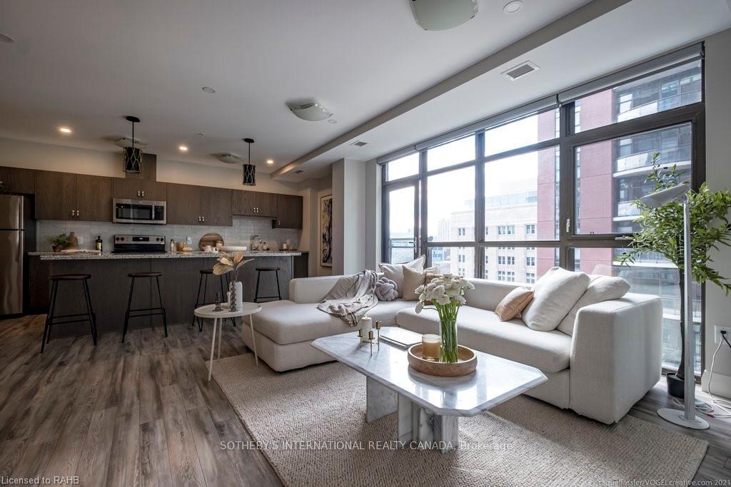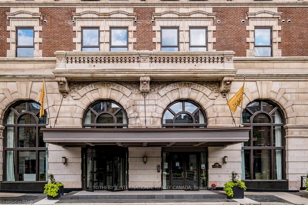 Bright. Modern. Iconic.Your slice of Uptown Manhattan is here in Hamilton at Suite 716 in the iconic Royal Connaught.This nearly 900 sq. ft. 1+den residence features bright, open living with floor-to-ceiling windows spanning the entire unit. Enjoy stunning southeast views of the courtyard, city, and escarpment. Boasting one of the building's best layouts, this wide, functional design offers no neighbours on either side, a 9-foot island for entertaining, motorized living room blinds, and a primary bedroom blackout blind. The spacious open den could easily convert to a secondary bedroom. Indulge in rooftop sunsets, barbecues, and starlit evenings. With concierge service, top-tier amenities (gym, media room, party room), and the city's best restaurants/cafes at your doorstep, this is more than a condo, it's a lifestyle. See this beautiful suite for yourself.